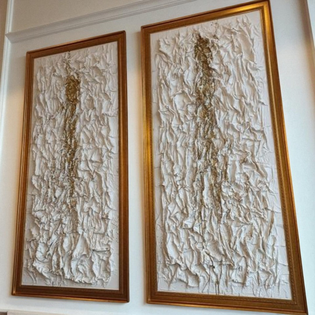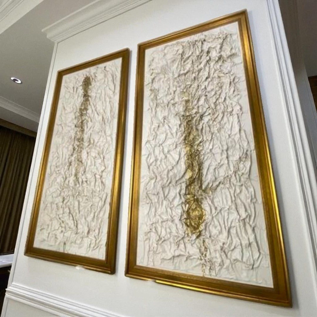 CUADRO ABSTRACTO OLEAJE A MARCO DORADO (1 PIEZA) MEDIDA: 1.2 X 2.4 M