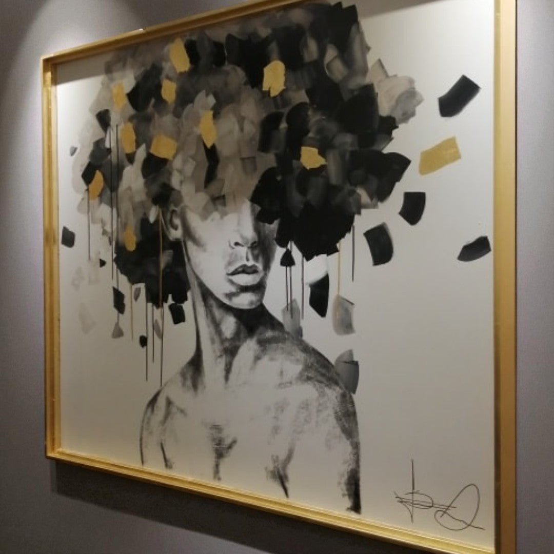 CUADRO FIGURA HUMANA PERIPLO MARCO DORADO MEDIDA: 1.5 X 1.2 M