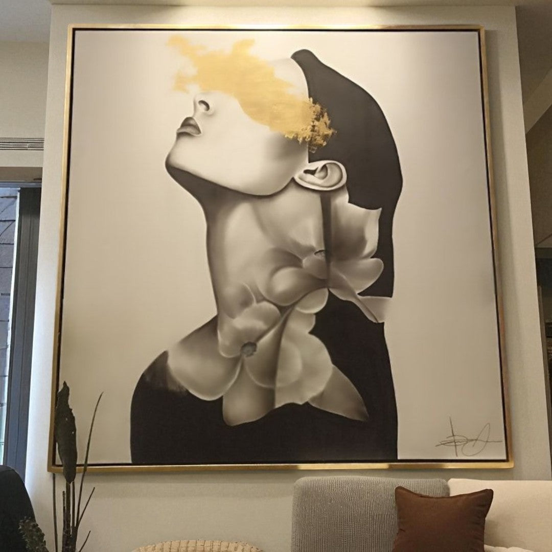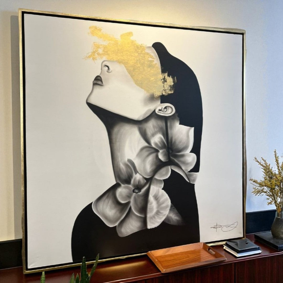 CUADRO FIGURA HUMANA SENSIBILIDAD MARCO DORADO MEDIDA: 1.8 X 1.8 M