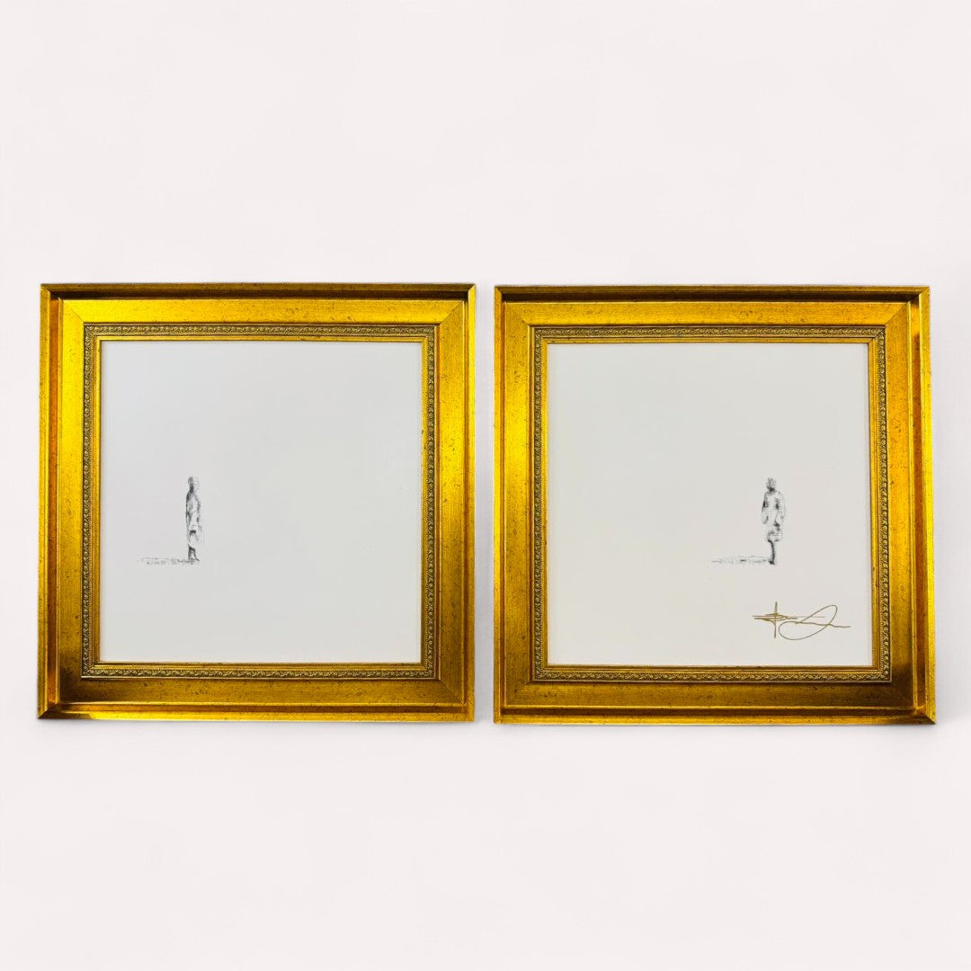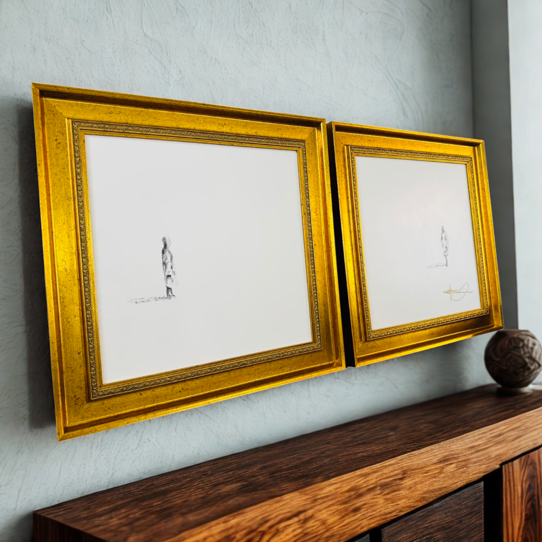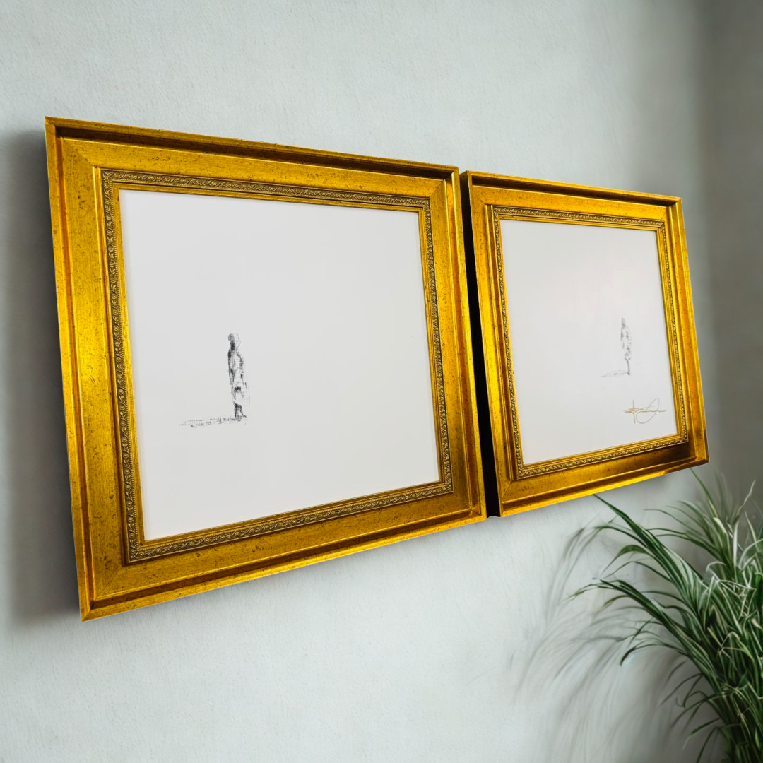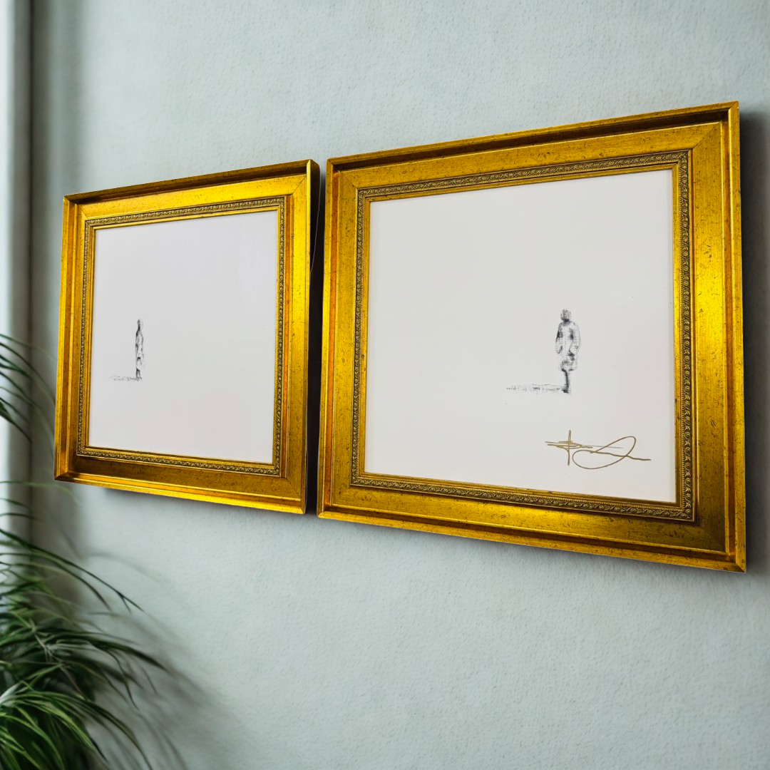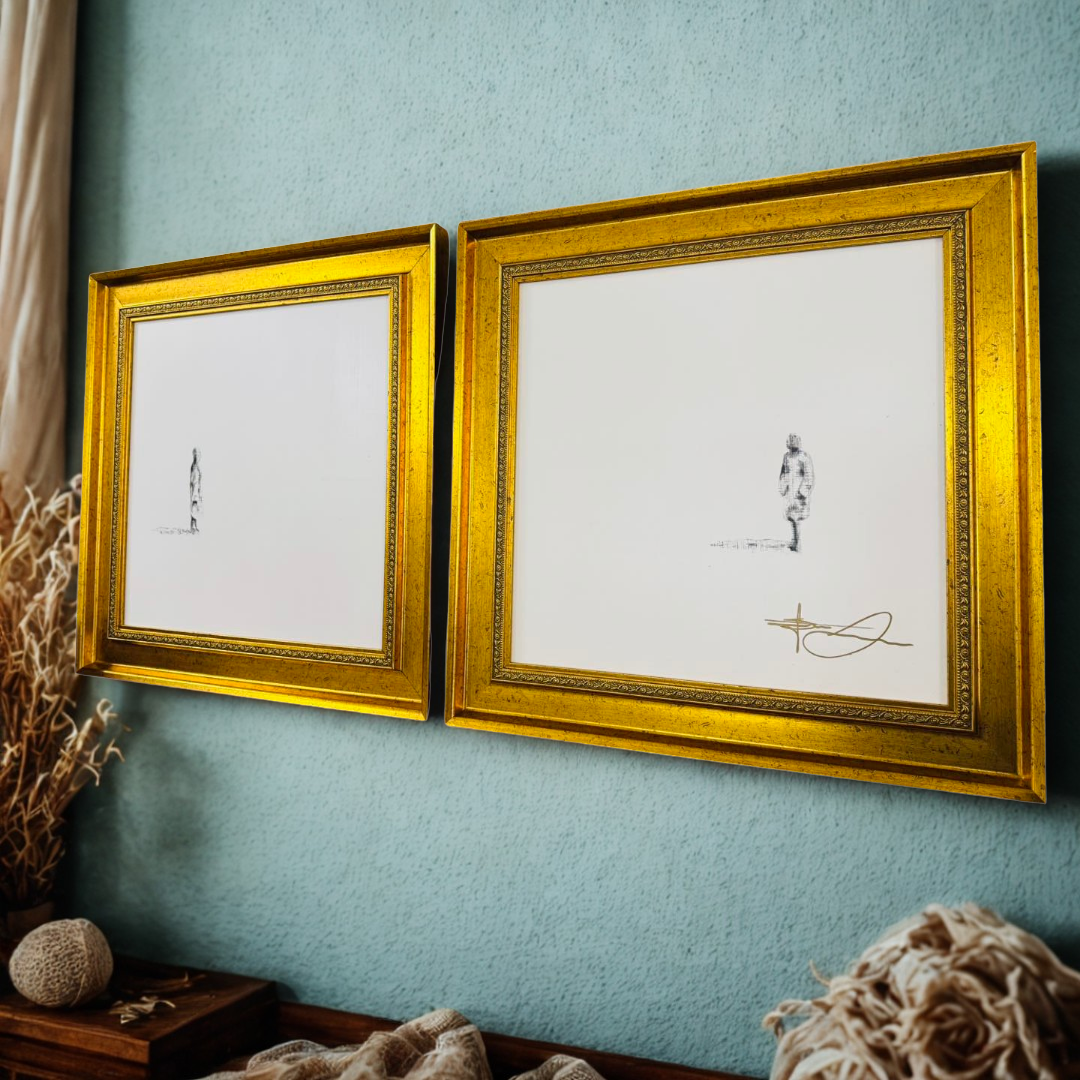 CUADRO FIGURA HUMANA Y COINCIDIR SET DE 2 MARCO DORADO MEDIDA: .70 X .70 M