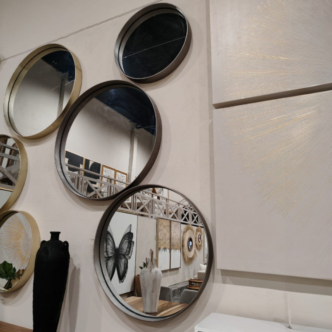 ESPEJO DECORATIVO ANILLO PIEL SILVER MEDIANO MEDIDAS: .80 M DIAMETRO
