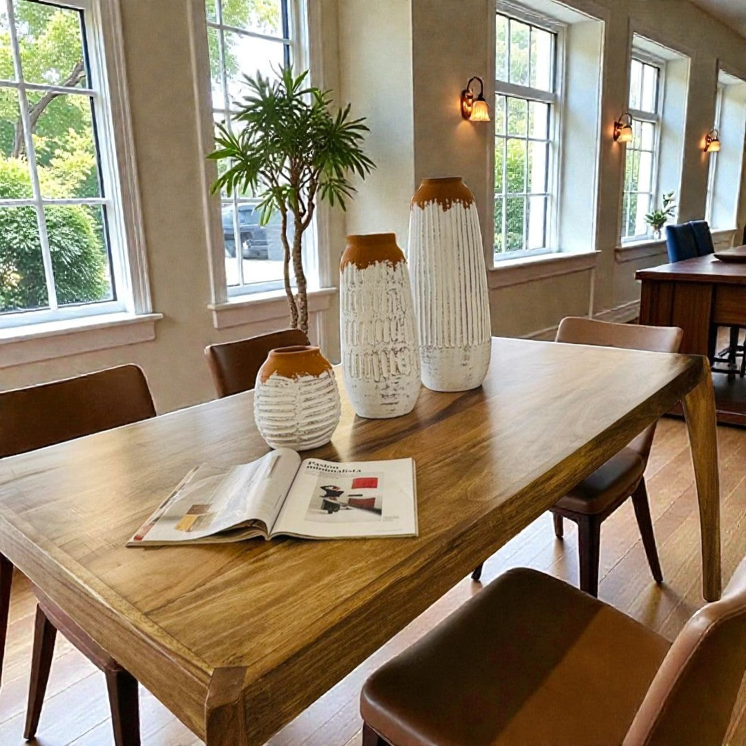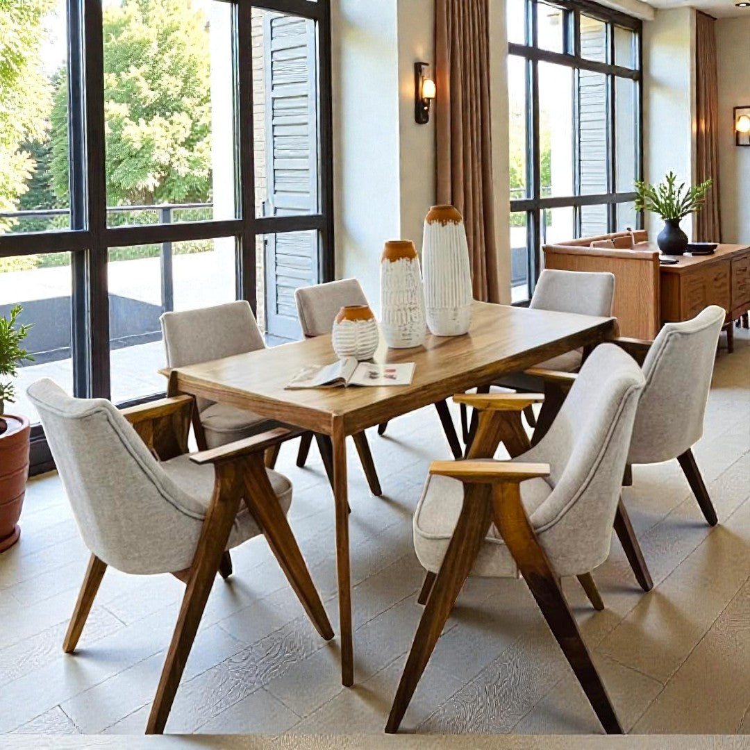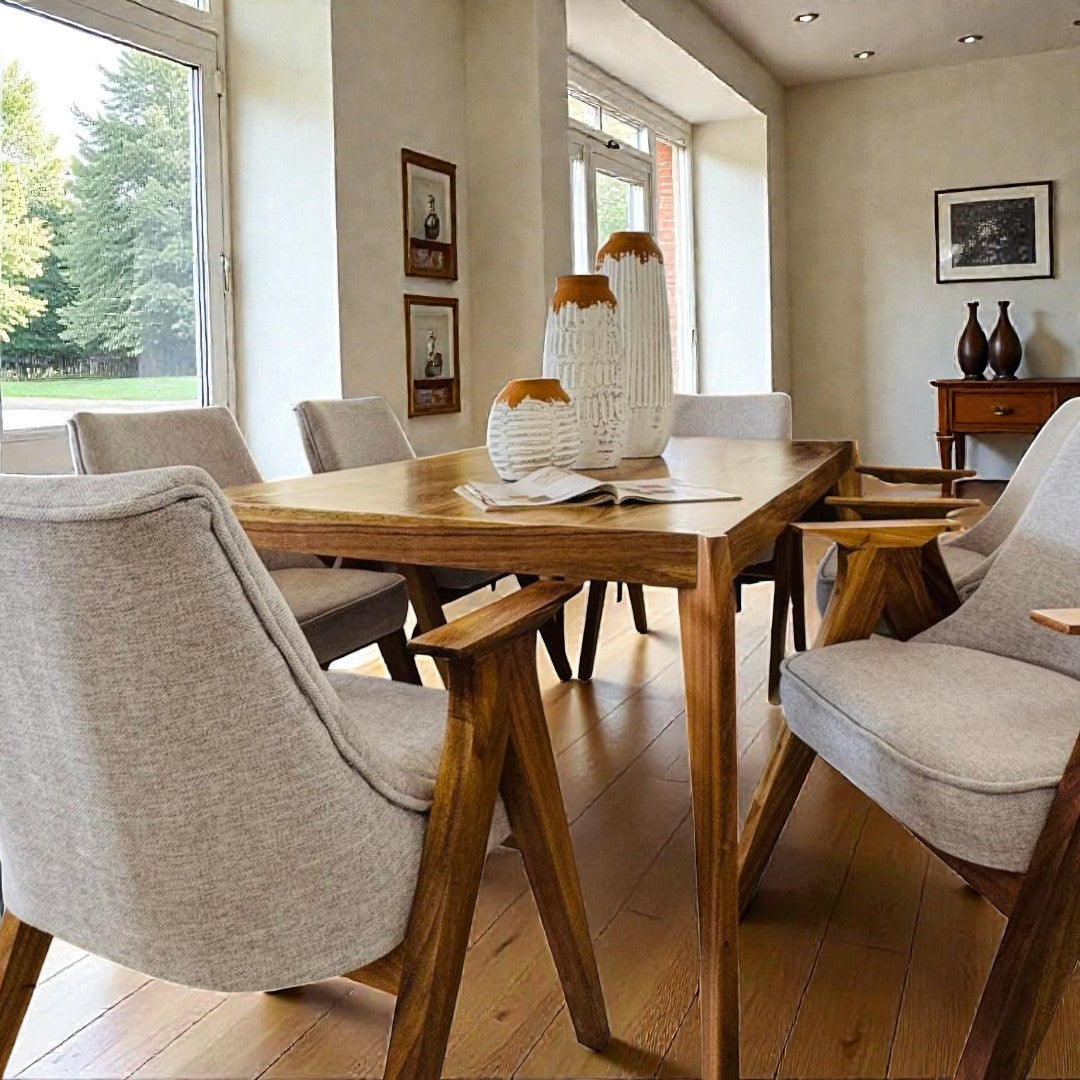 MESA DE COMEDOR COSMO 6P CUBIERTA 1 CM PAROTA, 2 CM PINO / PEDESTAL PAROTA MEDIDAS: 1.65 X 0.95 M