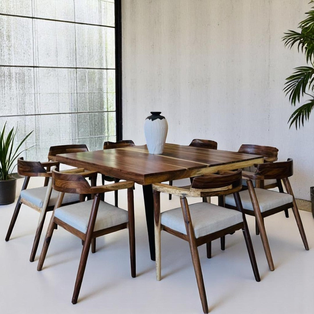 MESA DE COMEDOR BARI CUADRADA 8P 1.60 X 1.60 M TABLON 1" PAROTA PEDESTAL METAL