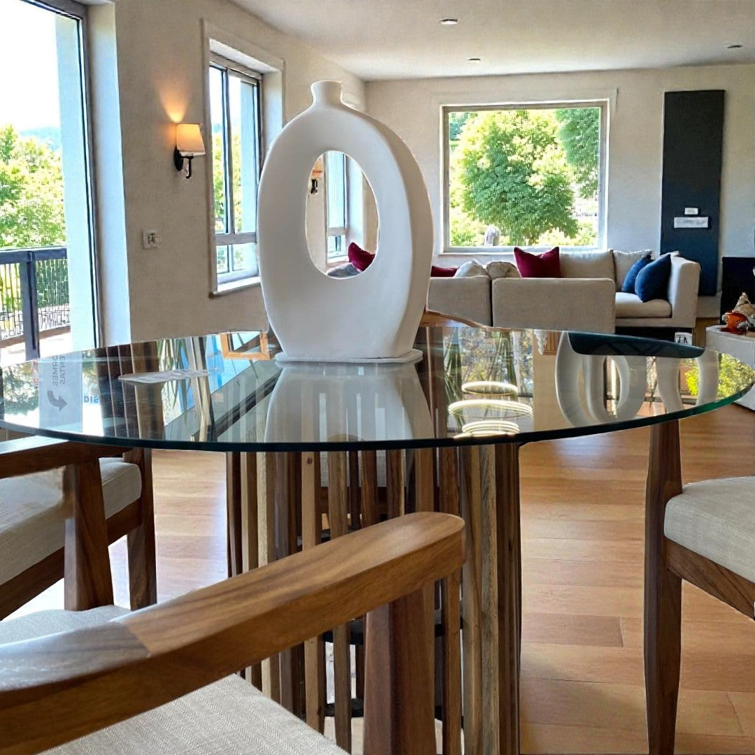 MESA DE COMEDOR BOHEM 4P PAROTA CUBIERTA CRISTAL RECOCIDO MEDIDAS: 1.20M