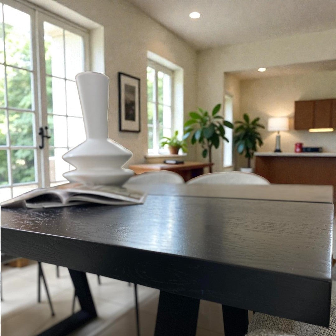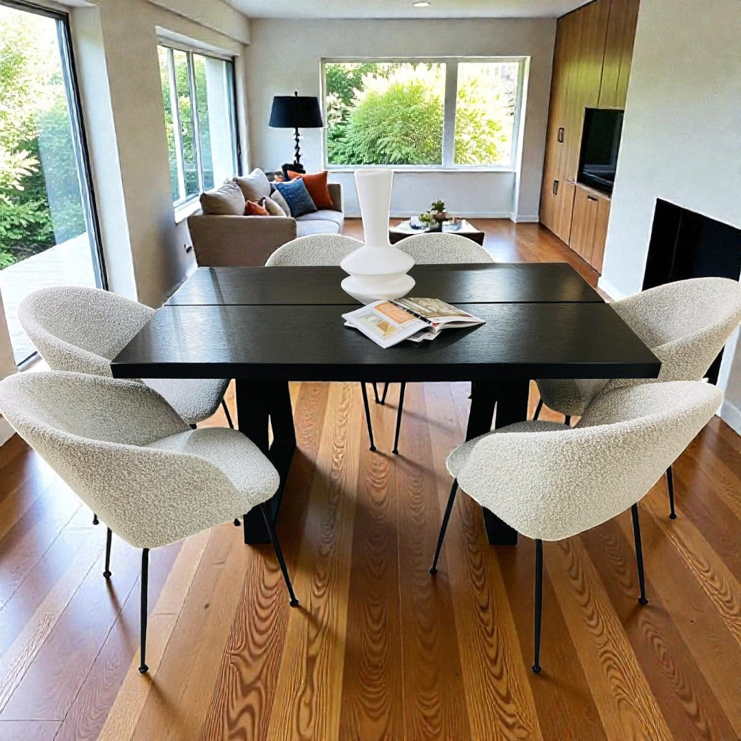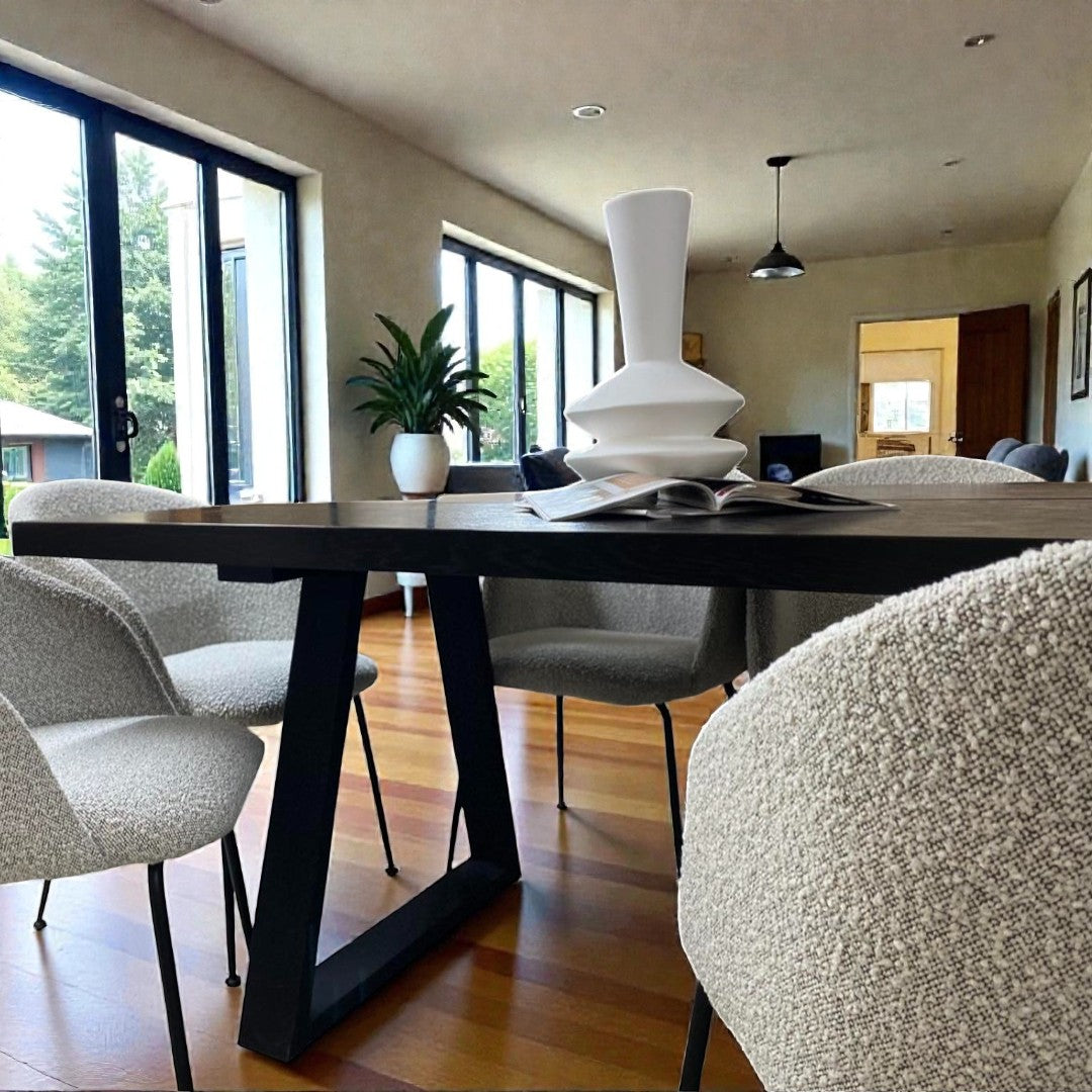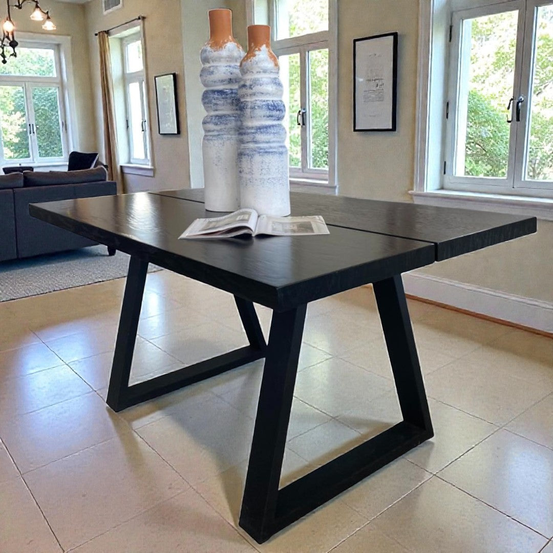 MESA DE COMEDOR DOHA RECTANGULAR 6P CHAPA ENCINO NEGRO PATAS METAL MEDIDAS: .75 X 1 X 1.6 M