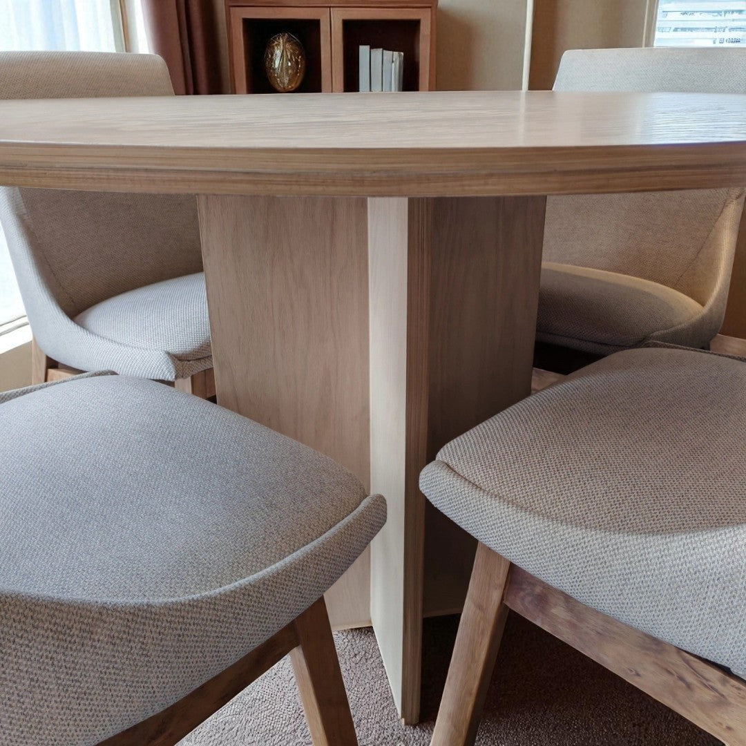 MESA DE COMEDOR GLAM 4P CHAPA ENCINO NIEVE 1.20M DIAMETRO