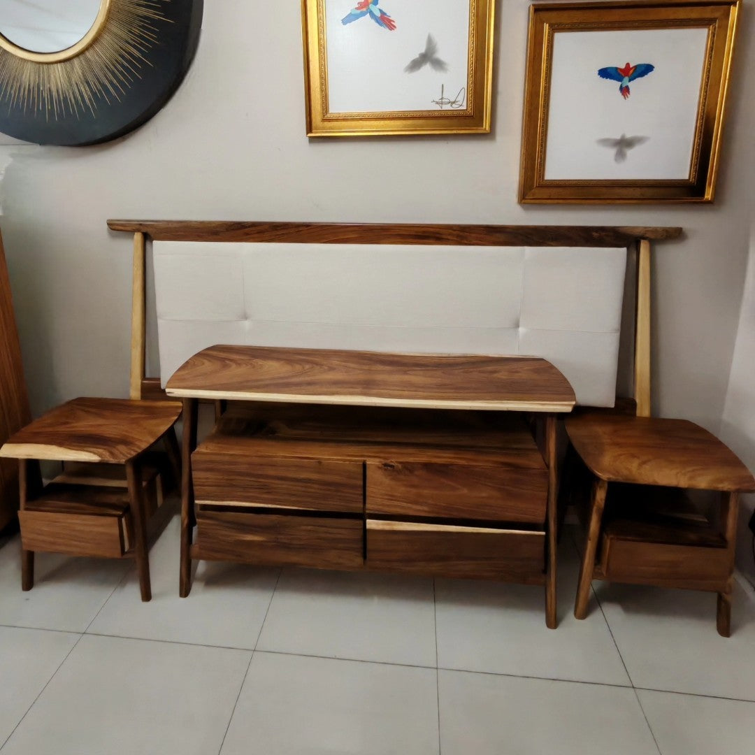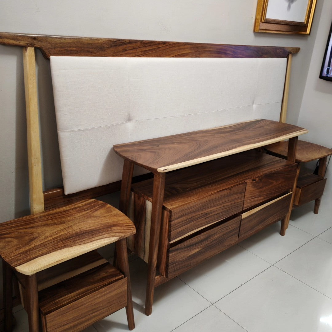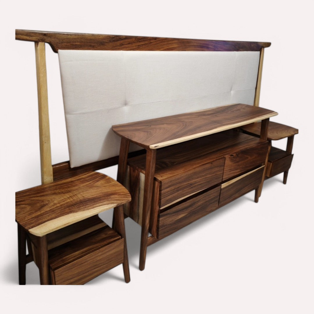 RECÁMARA OPORTO TALITHA KING SIZE 4 PZAS, CABECERA KING SIZE TELA , CÓMODA, 2 BURÓ CON MADERA PAROTA