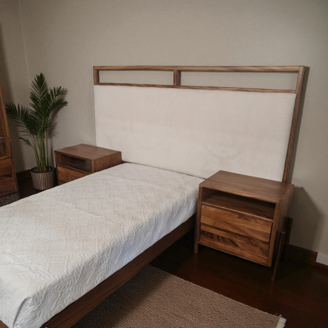 RECÁMARA MAKTUB KING SIZE 4 PIEZAS: CABECERA KS ANABELLE IVORY, CÓMODA, BURÓS (2 PIEZAS) CON MADERA PAROTA