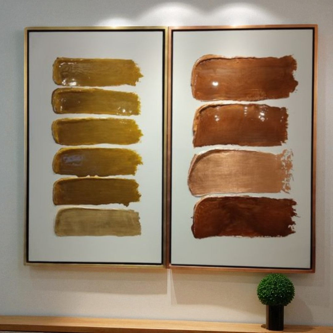 CUADRO ABSTRACTO LINGOTES A MARCO DORADO MEDIDA: 1.5 X .90 M