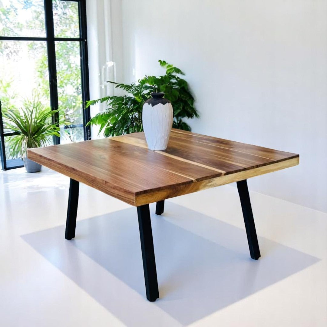 MESA DE COMEDOR BARI CUADRADA 8P 1.60 X 1.60 M TABLON 1" PAROTA PEDESTAL METAL